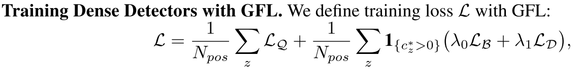 결론적으로 GFL 을 바탕으로 dense detector 를 학습할 때의 loss function 은 아래와 같다.