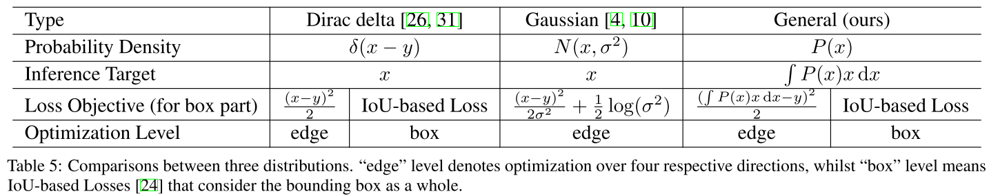 널리 사용되는 바운딩 박스의 표현은 대상 박스 좌표의 Dirac delta 분포로 볼 수 있다. 그러나 데이터 세트의 ambiguity 및 uncertainty 을 고려하지 못한 표현이라는 것을 문제점으로 삼았다. 이러한 문제점을 해결하기 위해 연속 공간에 대한 discretized probabiity distribution 을 직접 학습함으로써 박스 위치의 General distribution(e.g., Gaussian) 을 제안한다. 결과적으로 다양한 underlying distribution들을 인식하면서 보다 안정적이고 정확한 바운딩 박스 추정 값을 얻을 수 있다.