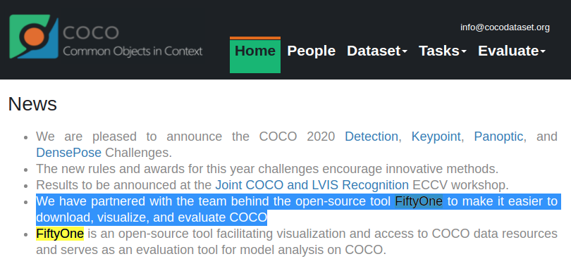 바로 FiftyOne 이라는 도구인데, COCO 데이터 리소스에 대한 시각화 및 액세스를 용이하게 하는 오픈 소스 도구이며 COCO 데이터를 이용하여 모델 분석 및 평가까지 쉽게 할 수 있다. 개인적으로 생각하기에 제일 좋은 기능은 잘못 라벨링 된 주석을 확인하고 수정할 수 있는 기능 아닐까 싶다.