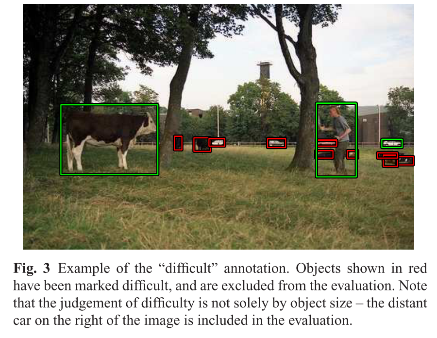 VOC2008 챌린지에서는 폐색(occlusion)이 있는 경우 "occluded" 라는 주석이 포함되어 있다고 합니다. 또한 difficult 라는 주석이 포함되기도 합니다. 평가에서 그러한 객체는 폐기 되지만 detection 에 대한 페널티는 발생하지 않는다고 하네요.