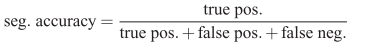 segmentation과 같은 경우는 올바르게 레이블이 지정된 픽셀의 백분율을 계산하여 평가하게 됩니다.