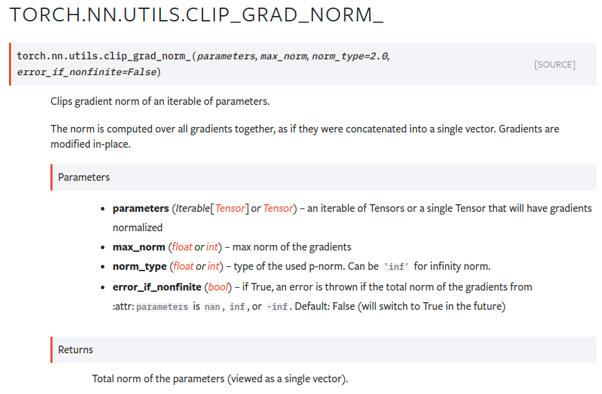 torch.nn.utils.clip_grad_norm_(model.parameters(), max_norm)