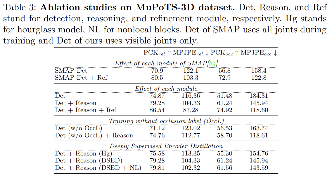 - occluded joint를 효율적으로 추론하기 위해 DSED(Deeply Supervised Encoder Distillation) network 제안, 이는 hourglass 모델이 실패하는 것들을 해결함. 이러한 방법은 scalability 및 performance가 좋다는 것을 보여줌