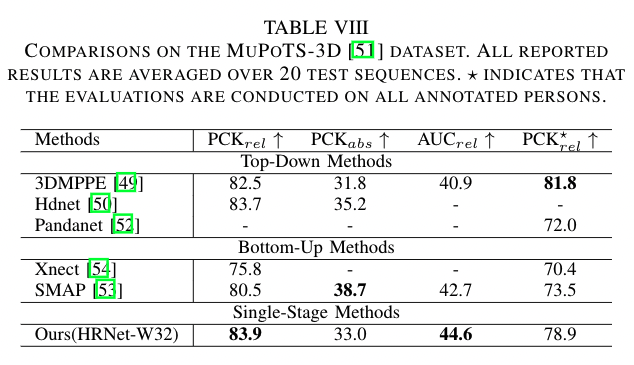 - 2D framework를 유지하고 depth estimation componet를 추가하고, 3D multi-person pose estimation task로 확장하여 MuPoTS-3D에 대한 결과를 추가함