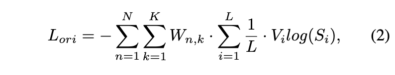 RTMPose는 keypoint localizjation을 수평 및 수직 좌표에 대한 분류 작업으로 처리하는 SimCC 기반 알고리즘으로 포인트를 예측하게 됩니다. 이 설계에 따라 logit-based knowledge method 방법을 적용할 수 있습니다. RTMPose에서 사용하는 original classficiation loss는 다음과 같습니다.