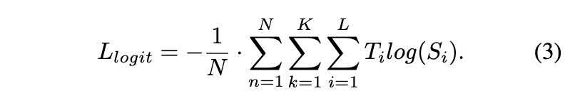 레이블 값과 달리 보이지 않는 keypoint도 teacher 가 합리적인 값으로 분배할 수 있다고 합니다. 마치 confidence와 같은 것이죠. 그래서 logit의 distillation loss는 다음과 같이 정의 될 수 있습니다.