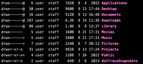 아래 사진처럼 디렉터리가 있으면 맨 왼쪽에 소유권이 표시되어있다. (예를 들면 drwxr-xr-x)