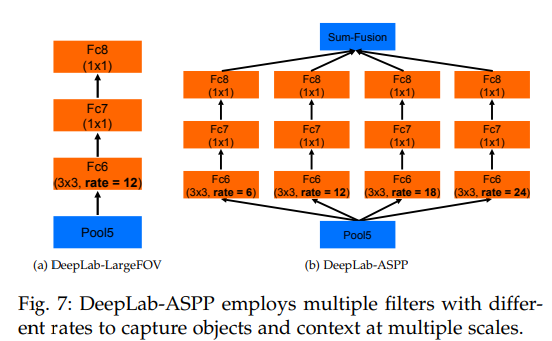 위와 그림 (a)에서 확장 계수를 12로 고정시키는 방식보다 ASPP 방식을 사용하는 것이 1/7% 성능 향상이 있었다고 한다.